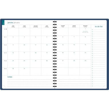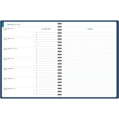 Agenda semainier Amélie 21x27cm bleu. Format : 21x27cm 12 mois de janvier à décembre. La semaine sur 1 page à horizontale et TO-DO list Coins ronds détachables. Couverture toucher doux avec décor marquage métallisé. Papier blanc.