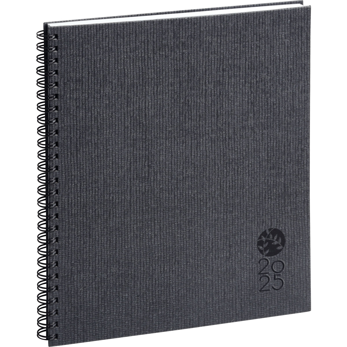 Agenda semainier Forever 19,5x22,5cm gris. Format : 19,5 x 22,5 cm. 13 mois Décembre à Décembre. La semaine sur 2 pages à la verticale. Reliure spirale Wire'o noire. Finition rembordée sur carton rigide. Rendez-vous par demi-heure de 7 heures à 21 heures, feuilles pour plannings, feuilles pour prises de notes. Coins détachables. Multilingue. Couverture au toucher textile.