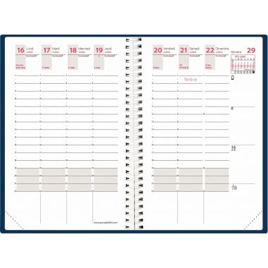 Agenda semainier Quo Vadis Time&Life 10x15cm bleu métal.