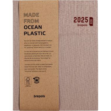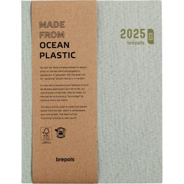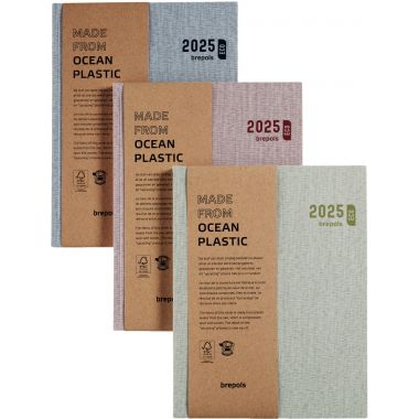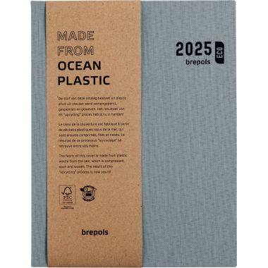 Agenda semainier toile océan 17x22cm assorti. Format : 17 x 22cm. 12 mois de janvier à décembre. La semaine sur deux pages à la verticale. Papier chamois. Reliure cousue. Couverture réalisée avec du plastique récupéré dans la mer.