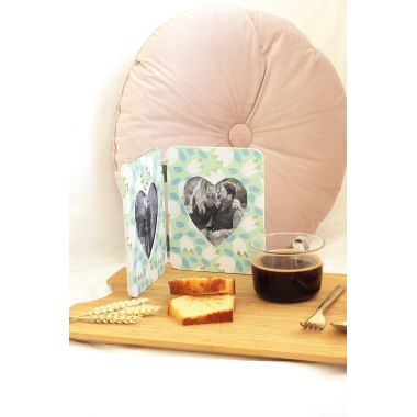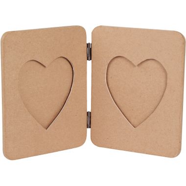 Cadre album 2 photos en carton brun. Facile à poser grâce à sa forme d'album à ouvrir. Avec 2 emplacements photos en forme de cœur (L.9,5 x H.10 cm) à insérer par le haut. Dimensions fermé : L.14 x H.18 x ép.1,5 cm.