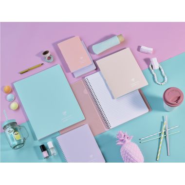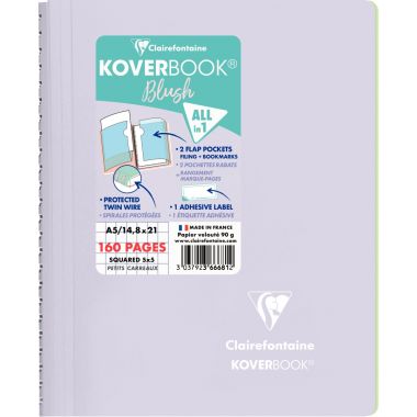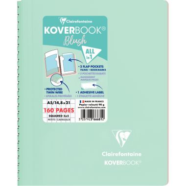 Cahier à reliure intégrale 160 pages KOVERBOOK BLUSH, format A5, quadrillé 5x5. Cahier tendance aux tonalités pastel ! Couverture bicolore enveloppante en polypropylène opaque, épais et résistant avec 2 rabats. 2 en 1 : les rabats peuvent à la fois servir de marque-pages et de pochettes pour ranger les documents. 5 coloris pastel assortis : bleu givré, menthe à l'eau, lilas, rose poudré et corail. Avec une étiquette adhésive pour personnaliser le cahier. Papier vélin velouté 90g, pour une sensation de glisse unique.