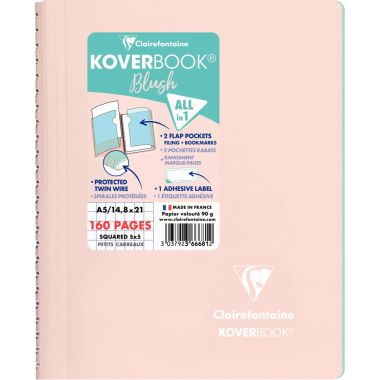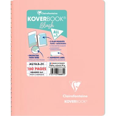 Cahier à reliure intégrale 160 pages KOVERBOOK BLUSH, format A5, quadrillé 5x5