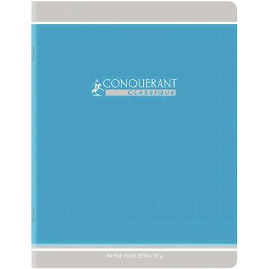 Cahier piqué 96 pages, 24x32 cm, seyès, papier 90g, bleu. Couverture en carte recyclée 300g avec vernis UV, papier vélin extra 90g.