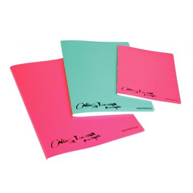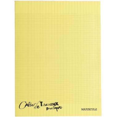 Cahier travaux pratiques MAJUSCULE, piqûre 96 pages, 24x32 cm, seyès/uni blanc, couverture polypro. 1 page seyès 90g / 1 page dessin blanc 90g. Livraison selon 4 coloris assortis : bleu, rouge, vert et jaune.