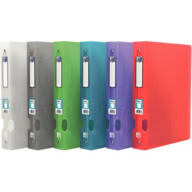 Carton de 10 classeurs 4 anneaux en polypropylène HAWAÏ, format A4+, dos 4 cm. Polypropylène transparent, grain ligné. Matière cristalline très résistante. Capacité 250 feuilles. Porte-étiquette avec étiquette de dos. Œillets de préhension. 4 anneaux ronds diamètre 30 mm. 6 coloris assortis.