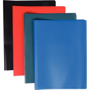 Carton de 30 protège-documents en polypropylène 40 vues, coloris assortis. 20 pochettes en polypropylène grainé 4,5/100ème pour format A4 (21x29,7 cm). Couverture souple. Antistatique, évite les transferts d'impression. 4 coloris assortis : bleu, rouge, vert, noir.