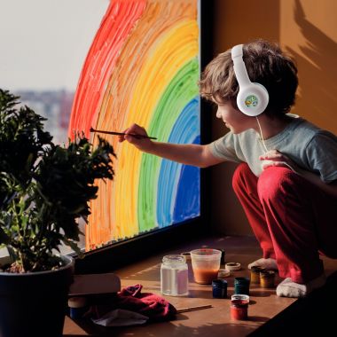 Casque filaire pour enfants jack 3,5 mm vert. Casque stéréo avec limiteur de décibel (85 dB). Spécialement conçu pour les enfants. Arceau petit format et réglable en hauteur. Mousses et arceau en similicuir pour un confort d'écoute tout particulier. Cette matière résiste à la transpiration et à l'eau, et ne s'abîme pas facilement. Des stickers à coller sur les écouteurs pour les personnaliser et stimuler la créativité de l'enfant. Contenu de la boîte : casque et stickers. Type de connecteurs : Jack 3.5 mm. Longueur du cordon (cm) : 120. Compatibilité : Smartphone, tablette, ordinateur, console, lecteur MP3, amplis... Garantie : 2 ans.