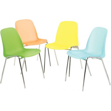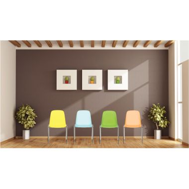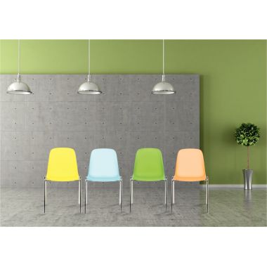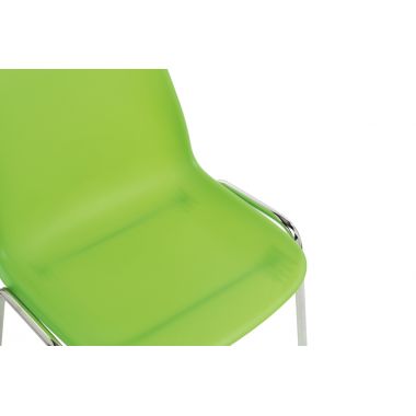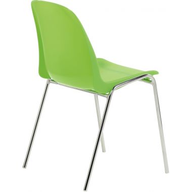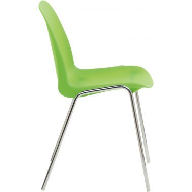 Chaise Charlotte givrée vert. Chaise coque en polypropylène. Piètement tube chromé de diamètre 19 mm. Empilable. Utilisation intérieure. Norme EN 16139. Pour utilisateur jusqu'à 110 kg. Garantie 2 ans.