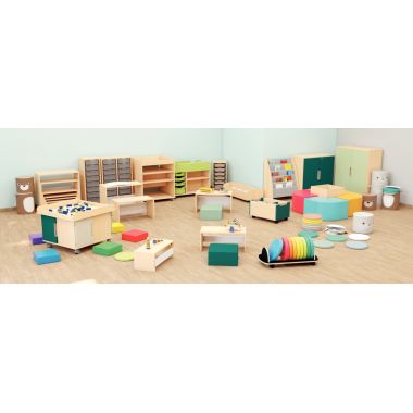 Chariot + 12 coussins en mousse diamètre 32cm. Chariot en contreplaqué de 18mm, avec 12 coussins en mousse recouvert de PVC. Facilement transportable grâce à ses 4 roulettes et sa poignée. Dimensions chariot : L.80 x l.39 x H.23cm Diamètre coussin : 32cm Epaisseur coussin : 5cm