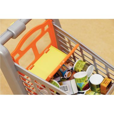 Chariot de supermarché en plastique. En plastique robuste. Avec un siège rabattable pour y installer son doudou préféré et une encoche sur le devant pour y introduire une pièce de monnaie. Pour faire ses courses comme les plus grands ! Livré monté. Dimensions (L x l x H) : 41 x 35 x 46 cm. Dès 3 ans.