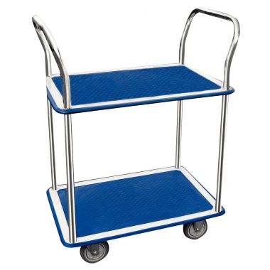 Chariot double étage 250kg. Roues PVC Dimension plateau : 48 x 74 cm Hauteur 91 cm
