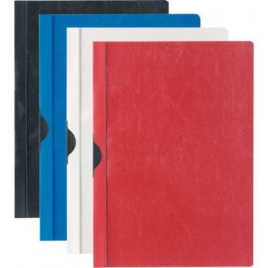 Chemise de présentation à clip pour format A4 dos 3 mm noir. Permet de classer, protéger et présenter vos documents sans les perforer, ni les agrafer. Couverture transparente en polypropylène souple et clip en acier. Capacité 1 à 30 feuilles A4.Face transparente et dos de couleur.