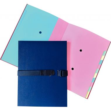 Chemise trieur extensible 12 compartiments, bleu foncé. Carton recouvert de balacron. Tient debout dans l'armoire à partir de 500 feuilles. Capacité maxi 1500 feuilles, extensible jusqu'à 16 cm. Les sous-dossiers ne glissent pas dans la chemise qui possède un rabat en pied et une sangle velcro. Format 24 x 32 cm pour documents A4 à classer.