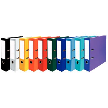 Classeur en carton épais recouvert de polypropylène (plat et dos), intérieur papier. OEillet de préhension et renforts métalliques à la base du classeur pour éviter une usure prématurée en position verticale. Grand porte-étiquette et étiquette utilisable recto/verso. Format extérieur 32 x 29 cm.