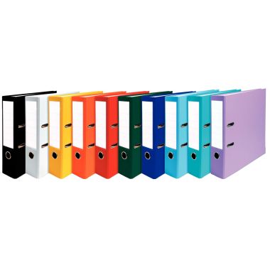 Classeur en carton épais recouvert de polypropylène (plat et dos), intérieur papier. OEillet de préhension et renforts métalliques à la base du classeur pour éviter une usure prématurée en position verticale. Grand porte-étiquette et étiquette utilisable recto/verso. Format extérieur 32 x 29 cm.