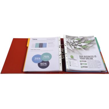 Carton épais recouvert de polypropylène 28/10ème intérieur et extérieur. Format A4+ (32 x 30 cm) pour documents A4 à classer (21 x 29,7 cm) Idéal pour utiliser des intercalaires pour pochettes perforées sans jamais dépasser. Porte-étiquette soudé + étiquette. Mécanisme Prem'Touch en acier renforcé garanti 10 ans et ergonomique grâce à son bouton poussoir. Coins métalliques et renforts. Œillet de préhension.