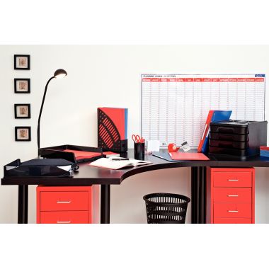 Corbeille à courrier ajourée recyclée noire. Corbeille à courrier en polypropylène couleur noir, superposable verticalement, en escalier et à droite ou gauche, avec porte - étiquette. Dimensions : 330x275x75 mm