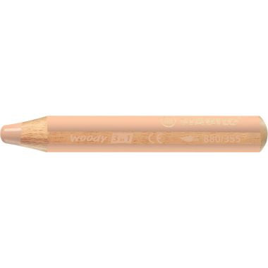 Crayon de couleur Woody rose chair. Crayon 3 en 1 à la fois crayon de couleur, craie grasse et aquarelle. Son corps large et léger est parfaitement adapté aux petites mains. Sa mine grasse extra tendre et très pigmentée permet de dessiner et écrire sur une multitude de surfaces, telles que le bois, le verre, le plastique, le carton ou encore une ardoise, un tableau noir ou blanc. Sa mine aquarellable se dilue avec un pinceau et de l’eau. Longueur 11cm, diamètre mine 10mm, diamètre crayon 15 mm. Corps rond.
