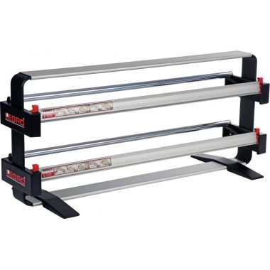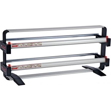 Dérouleur 2 rouleaux papier cadeau et/ou bolduc. Dérouleur de table. Peut être utilisé pour le bolduc. Matière : aluminium. Poids du dérouleur : 4kg. Largeur de coupe : 75cm. Diamètre maximum du rouleau : 15,5cm. Poids max du rouleau : 30kg. Epaisseur max du papier : 120g/m2. Livré démonté sans outils. Visserie inclus.