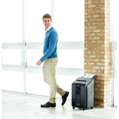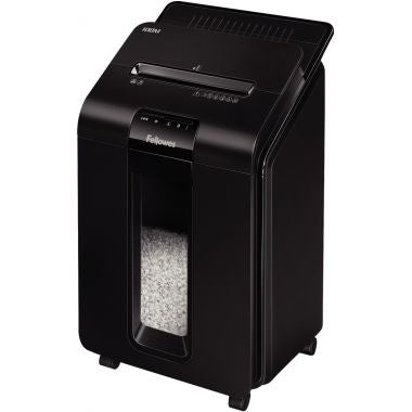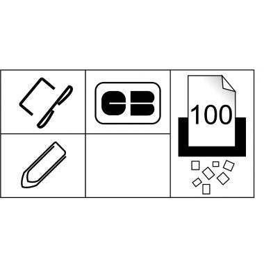 Destructeur personnel Automax 100M. Détruit 100 feuilles en destruction automatique et 10 en manuel. Coupe Mini-Cut, 4 x 10 mm. Cycle de fonctionnement: 15 min. Corbeille extractible de 23 L. Marche arrière en cas de bourrage. Usage fréquent. Garantie 2 ans (+1 an si inscription) sur la machine et 7 ans sur les cylindres de coupe.