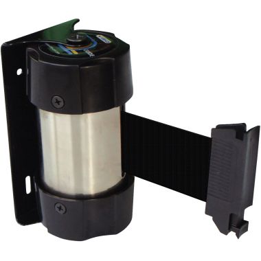 Enrouleur mural à sangle 2m noir. La sangle, freinée de 2,10 m. Le récepteur mural inclus est doté de la technologie anti-panique qui détachera automatiquement la sangle en cas de mouvement de foule. La tête est orientable pour une installation sur mesure. Les fixations et le récepteur mural sont inclus.