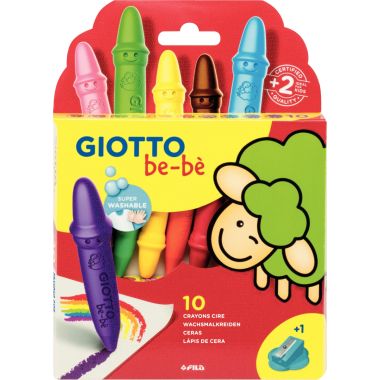 Étui de 10 craies cire incassable + taille-crayon. Spécialement adaptés aux plus petits. Très résistants, couleurs vives, brillantes, ultra lavables. Longueur 7,5 cm diamètre 11 mm. Dès 2 ans.