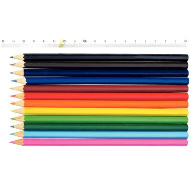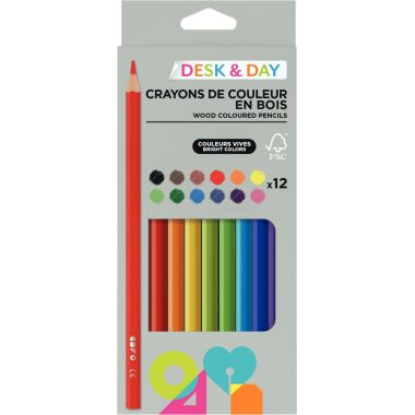 Étui de 12 crayons de couleur assortis. Longueur du crayon : 18cm. Diamètre du crayon : 7mm. ils ne sont pas toxiques, sans solvant et nul besoin d‘être lessivables puisqu’il s’agit de crayons de couleurs.