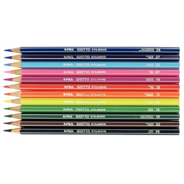 Étui de 12 crayons de couleur Stilnovo assortis. Crayons hexagonaux,vernis de la couleur de la mine. Mine de qualité supérieure. Couleurs assorties vives et intenses. Emplacement pour écrire son nom. diamètre de la mine : 3,3mm. diamètre du crayon : 6,8 mm . Longueur : 18cm.