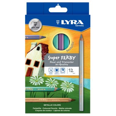 Étui de 12 crayons de couleur Super Ferby métalliques. Mine extra grosse diamètre de 6.25 mm Particulièrement résistante au bris Très grande luminosité des couleurs Très économique à l'emploi Non aquarellable.