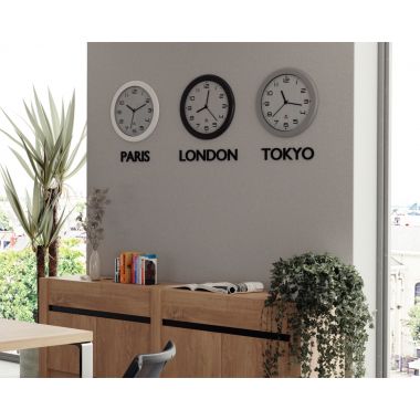 Horloge silencieuse diamètre 30cm gris métal. Munie d’un mécanisme à quartz haute précision de 2 aiguilles et d’une trotteuse, et d’un design permettant une lisibilité parfaite de l’heure. Silencieuse et précise elle convient à tous les espaces intérieurs. Lisibilité optimale de l’heure grâce à ses grands chiffres noirs sur fond blanc. Cadran an ABS recyclé diam. 30cm. Lentille en verre. Hauteur des chiffres 1.8cm. Poids : 520g. Coloris gris métal. Fonctionne avec 1 pile LR06/AA non fournie. Garantie 3 ans.