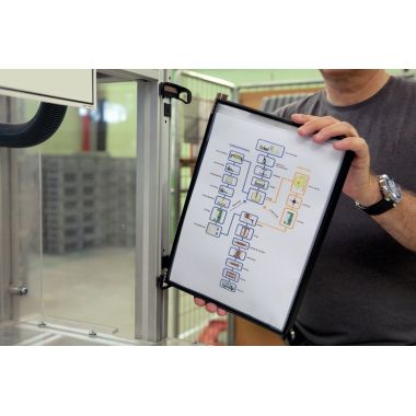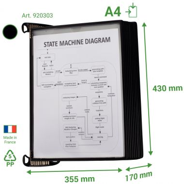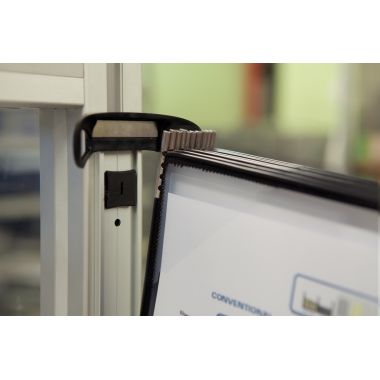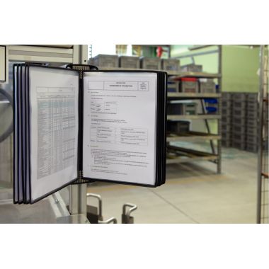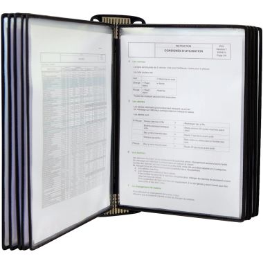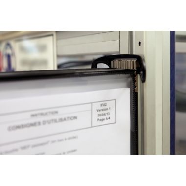 Kit mural pro 10 poches EASY LOAD. Système de présentation mural avec système breveté de fixation magnétique des poches. - Poche cadre renforcé avec armature an fil d’acier, pivots métalliques et poche en polypropylène transparent, grainé, anti-reflet. - Poches PP avec système d’ouverture sur 2 côtés : Easy Load, pour une insertion facile des documents. - Support aluminium résistant à la chaleur et à la corrosion. - Trois fixations possibles : par vis (non fournies), par aimant (bande magnétique incluse), ou par T-clips (inclus). Dimensions : L.35.5 x H.43 x E.17 cm Poches 100% recyclables
