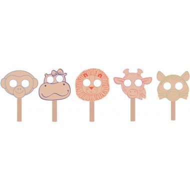Lot de 10 masques en bois, les animaux de la savane. Grands masques en bois blanc épais, pré-dessinés aux contours colorés. A décorer avec des feutres ou de la peinture et à recouvrir de laines, de chenilles, de pompons ou de paillettes pour personnaliser de sympathiques animaux de la savane (2 x 5 modèles assortis) : lions, singes, hippopotames, girafes et léopards. Pas besoin d’élastique, l’enfant place facilement le masque devant son visage grâce à une large poignée de préhension. Développer la créativité des enfants qui pourront par la même occasion participer à des jeux de rôle et des petites scénettes. Dimensions moyennes des masques : L.22 x H.30 x ép.0,2 cm.