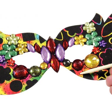 Lot de 12 masques en carte à gratter. Multicolore, 4 modèles. Dimensions d'environ : 22 x 15 cm.