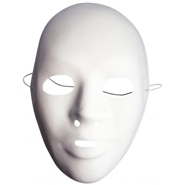 Lot de 12 masques vénitiens coloris blanc. Pour adultes. Avec élastiques. A décorer. Dimension : 22.5 x 15,5 cm.