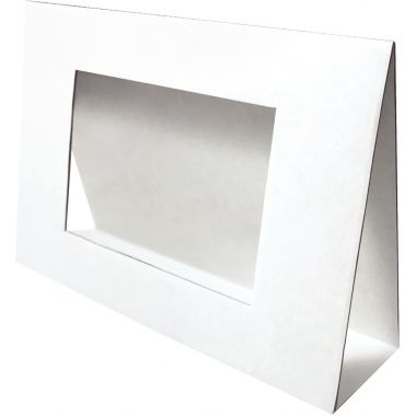 Lot de 24 cadres photo chevalet. Planches en carton blanc rigide, faciles à plier selon les pointillés pour former 24 cadres photo à personnaliser (colle nécessaire pour fixer le pliage). Emplacement pour photo 10 x 15 cm pré découpé. Format portrait ou paysage. Atelier pour un classe complète. Dimensions d’un cadre : 17,5 x 26,5 x ép.6,5 cm.