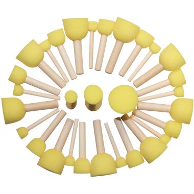 Lot de 30 pochoirs ronds, manche en bois, embout en mousse