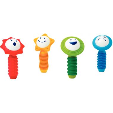 Lot de 4 jouets sensoriels SMARTMAX. Contient 8 pièces de construction magnétique en plastique et en caoutchouc souple, pour réaliser 4 hochets sensoriels et sonores. Un jeu ludique pour développer la dextérité, le sens du toucher et l’ouïe dès le plus jeune âge. Les enfants vont s'amuser à réaliser les 4 hochets en associant les couleurs, aborder les émotions grâce aux 4 visages expressifs et découvrir les effets d'attraction et de répulsion des aimants. Un jeu idéal pour les petites mains avec des pièces faciles et agréables à manipuler. Dimensions d’un bâtonnet : L.7 x Ø.2,7 cm. Diamètre d’un boule « visage » : 7 cm. Dès 12 mois.