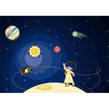 Lot de 6 planches gommettes papiers holographiques. Contenu : 120 gommettes holographiques repositionnables échenillées. Thème : l’espace La scène téléchargeable gratuitement, permet aux enfants de recomposer un univers passionnant tout en apprenant le système solaire. Dimensions d’une planche (Lxl) : 15.2x21cm A partir de 3 ans