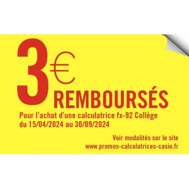 Machine à calculer scientifique Casio FX92 New Spéciale Collège Classwiz. Conçue pour les programmes du collège de la 6ème à la 3ème. - Écran LCD haute résolution 5 lignes x 10 caractères avec 4 niveaux de gris - Génération de QR CODE : scan des QR codes à partir du résultat obtenu, tracé de diagrammes en bâtons, circulaires, histogrammes et diagramme en boîte en ligne. - Écriture naturelle en 2D, - Écriture scientifique d'un nombre, 3 unité d'angle (Degré Radian, Grade), possibilité de séquencer les calculs, simplifications automatique de l'écriture et calcul des racines carrées, calcul avec des puissances 'exposant entier relatif d'un nombre et avec des puissances 10. - Résolution de systèmes d’équations linéaires : jusque 4 équations et 4 inconnues, - Statistiques à 1 ou 2 variables, tri des données par ordre croissant ou décroissant. - Tableau de valeurs jusqu’à 2 fonctions, Statistiques a 1 et 2 variables, menu algorithmique dans le langage SCRATCH, menu tableur (création de table de données, formules, Min, MAx, Moyenne, somme...) - Mémoire de la réponse précédente, - Décomposition en facteurs premiers, - Calcul de PGCD/PPCM, - Simplification manuelle ou automatique de fractions, - Arrondis avec précision du nombre de décimales, - Vérification d’égalité/inégalité d’expressions, - Détermination de la 4e proportionnelle, - Génération de nombre entiers aléatoires, - Division euclidienne, calcul sur les fractions, - Fonctions trigonométriques - Conversion deg/mm/sec décimale. - Protection : couvercle coulissant. - Autorisée aux examens. - Math Box : simulation de lancer de dés, de piles ou face et visualisation de la droite des réels et du cercle trigonométrique. - Outils CALC (calcul de la valeur d'une expression), Outil STO (stockages des valeurs numériques) et Outil RECALL (affichage de l'ensemble des valeurs) Dimensions : 162 x 77 x 14mm. Pile LR03 Incluse (AAA) Poids : 100 grammes. Garantie : 3 ans.
