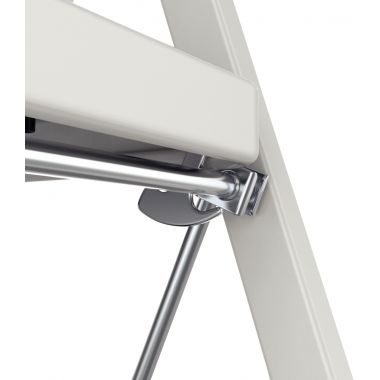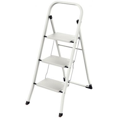 Marchepied 3 marches. Structure en tubes d’acier de section rectangulaire, 20 x 30 mm pour les jambes avant et 15 x 20 mm pour les jambes arrières. Marches 20 x 30 cm en tôle d’acier emboutie striée antidérapante. Finition laque époxy. Patins en plastique de protection de sol. Extra plat une fois plié. Conforme aux exigences sécuritaires de l’annexe N° 1 du décret N° 96-333 et de la norme EN 14183. Charge maximale admissible : 150 kg. Hauteur de travail (pour une personne de taille moyenne positionnée sur la marche la plus haute, bras levé) : 2.70m. Hauteur de la plateforme : 0.70m. Hauteur de rangement : 1.14m. Largeur : 0.67m. Poids : 5,34kg.