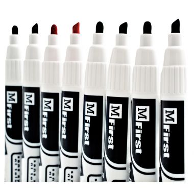 Marqueur tableau blanc MFirst pointe biseautée bleu. Corps plastique. Pointe bloquée haute résistance. Encre très lumineuse à base d'alcool. Faible évaporation. Convient également pour les "papiers boards" (ne traverse pas le papier). Produit sans xylène et toluène.