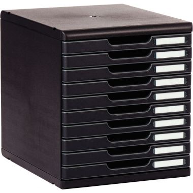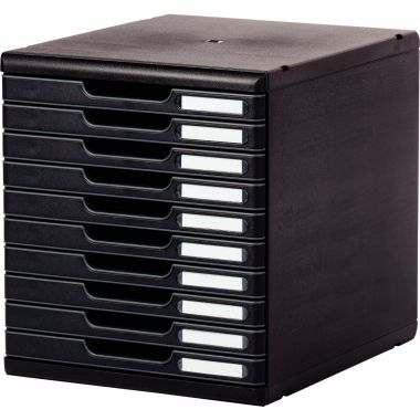 Module 10 tiroirs MODULO noir. Monobloc, ulotra rigide. Tiroirs ouvert permettant l'introdution directe de documents sans ouvirir les tiroirs. Coulissement parfait des tiroirs, avec butée de sécurité. Nombreuses combinaisons de coloris.