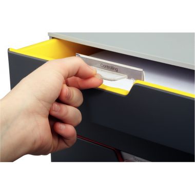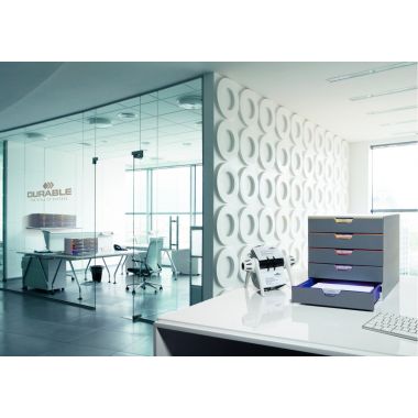 Module 10 tiroirs VARICOLOR. Module de classement, en plastique ABS, équipé de 10 tiroirs pour le classement de documents aux formats A4, Folio et enveloppes. Les différentes couleurs aident à l'organisation et au repérage, même lorsque les tiroirs sont fermés. Les tiroirs se coulissent parfaitement et silencieusement et sont équipés d'une butée d'arrêt. Les modules sont superposables et juxtaposables pour un gain de place dans les coffres et armoires. Patins antidérapants. Livré avec porte-étiquettes et insertions imprimables, pour faciliter le classement.Dimensions (H x L x P) : 292 x 280x 356 mm