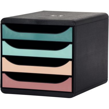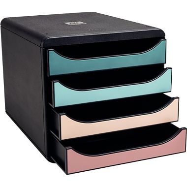 Module 4 tiroirs BIGBOX Skandi. Caisson individuel à 4 tiroirs pour documents au format A4+. Monobloc, ultra-rigide. Tiroirs ouverts permettant l'introduction directe de documents sans ouvrir les tiroirs. Coulissement parfait des tiroirs, avec butée de sécurité. Garantie : 25 ans