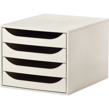 Module 4 tiroirs ECOBOX gris/gris. Réalisé à partir de bouteilles de jus de fruits recyclées. - Caisson individuel à 4 tiroirs au format A4+. - Tiroirs ouverts permettant l’introduction directe de documents sans ouvrir les tiroirs. - Coulissement parfait des tiroirs, avec butée de sécurité - Proportions idéales pour votre bureau.
