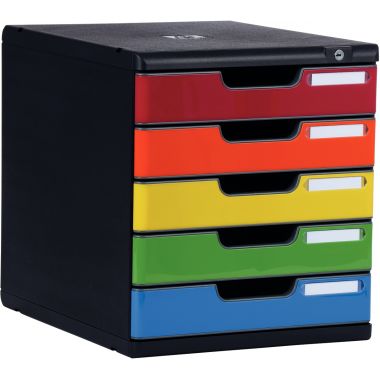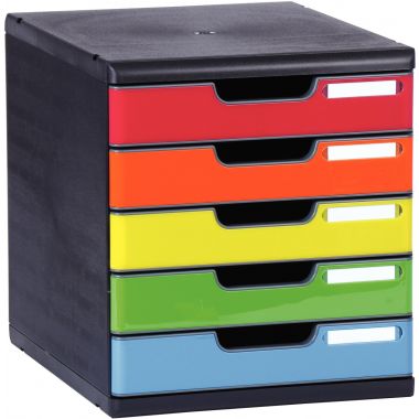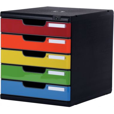 Module 5 tiroirs MODULO noir/arlequin. Garantie 25 ans. Coulissement parfait des tiroirs, avec butée de sécurité, poignée confortable et porte-étiquette.