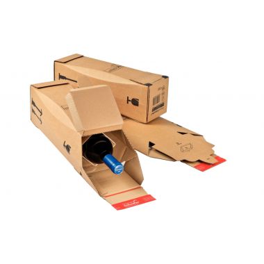 Paquet de 10 boites d'expédition pour bouteille 74x74x30,5cm . Convient pour l'envoi sûr de bouteilles de vin de 0,75L. Certifié par DHL pour l’envoi de 1 bouteille de vin (0,75 l de type Bordeaux). Hauteur maximale d’une bouteille : 300mm. Facile et rapide à mettre en place. Fermeture autocollante ColomPac® sur le fond et le couvercle, économisant du temps et ne nécessitant aucun autre moyen de fermeture. Avantage en terme de manipulation grâce à son exécution en une seule pièce. Dimensions extérieures : H.36,2 cm x L.11,5 cm x P.11,5 cm. Dimensions intérieures : H.30,5 cm x L.7,4 cm x P.7,4 cm.