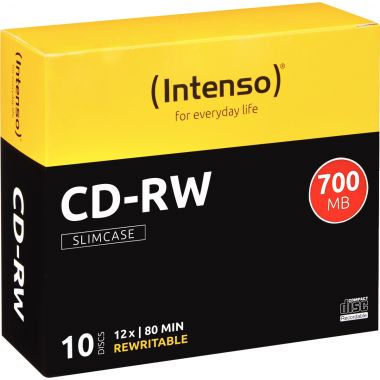 Paquet de 10 CD-RW Intenso 700 Mo 12X. Boitier slim - vitesse 12x.