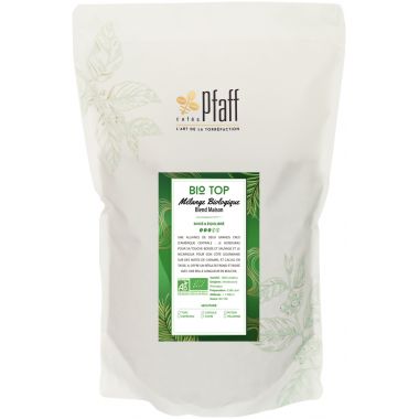 Paquet de 1kg café grain BIO TOP. Assemblage de café Bolivien et de Saint domingue Biologique. Alliance entre puissance et parfum, un café fruité et équilibré. Arôme généreux, idéal à tous moments de la journée.Les cafés PFAFF proposent les meilleurs plantations issues de l'agriculture Biologique avec un véritable intérêt gustatif. Pour un plaisir intact, nos cafés sont torréfiés lentement et à la commande avec tout le savoir faire de notre torréfaction artisanale.Café 100 % Arabica d'exceptionCafé 100 % BiologiqueCafé équilibré, Arabica idéal en expresso ou en filtre.Conditionné en sachet écologique et économique de 1Kg.
